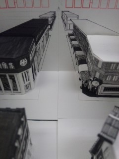 具体的な建物をペンで描き込んでいってます。